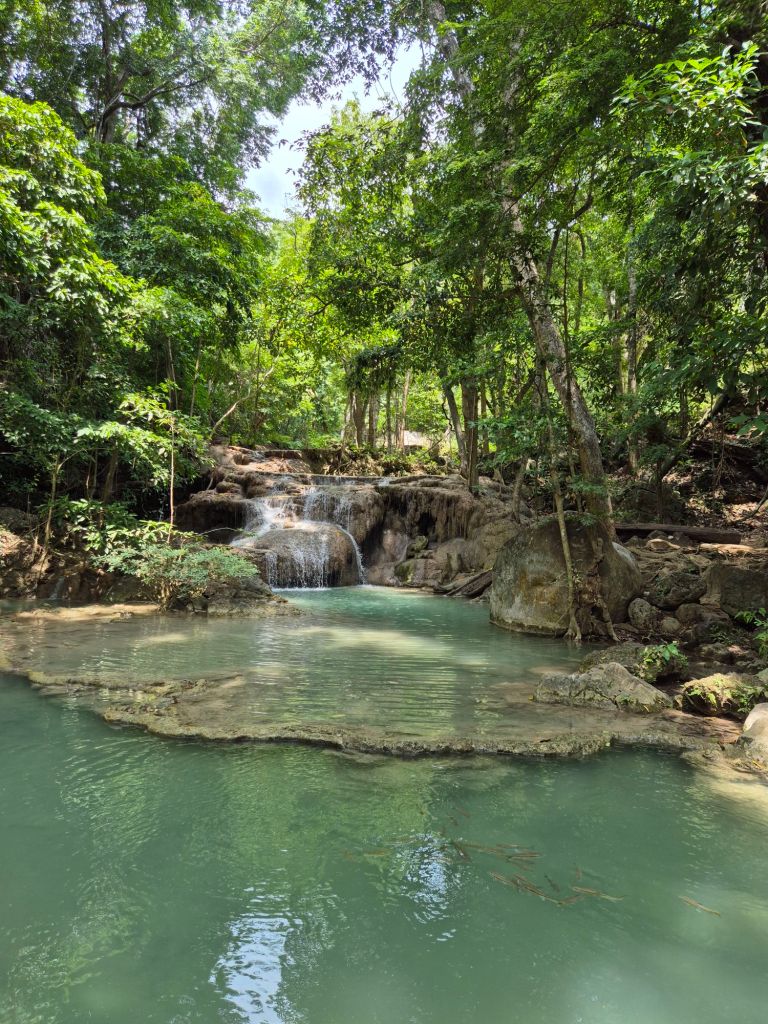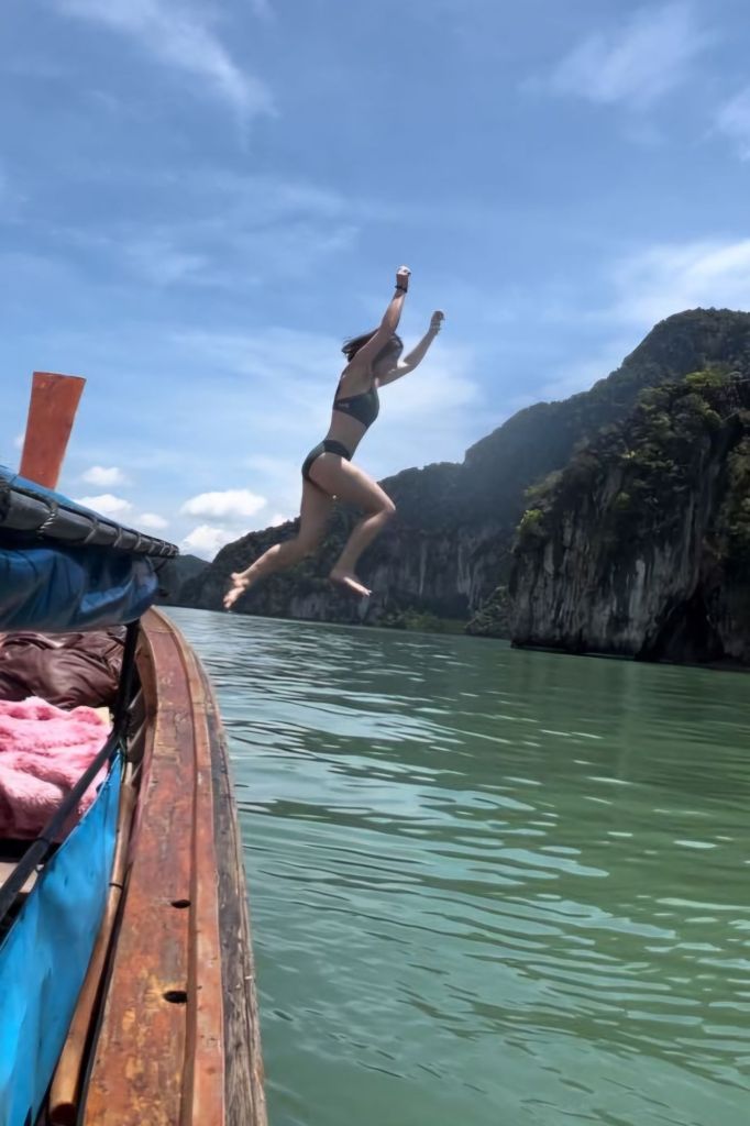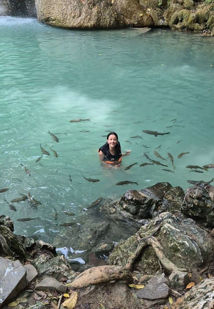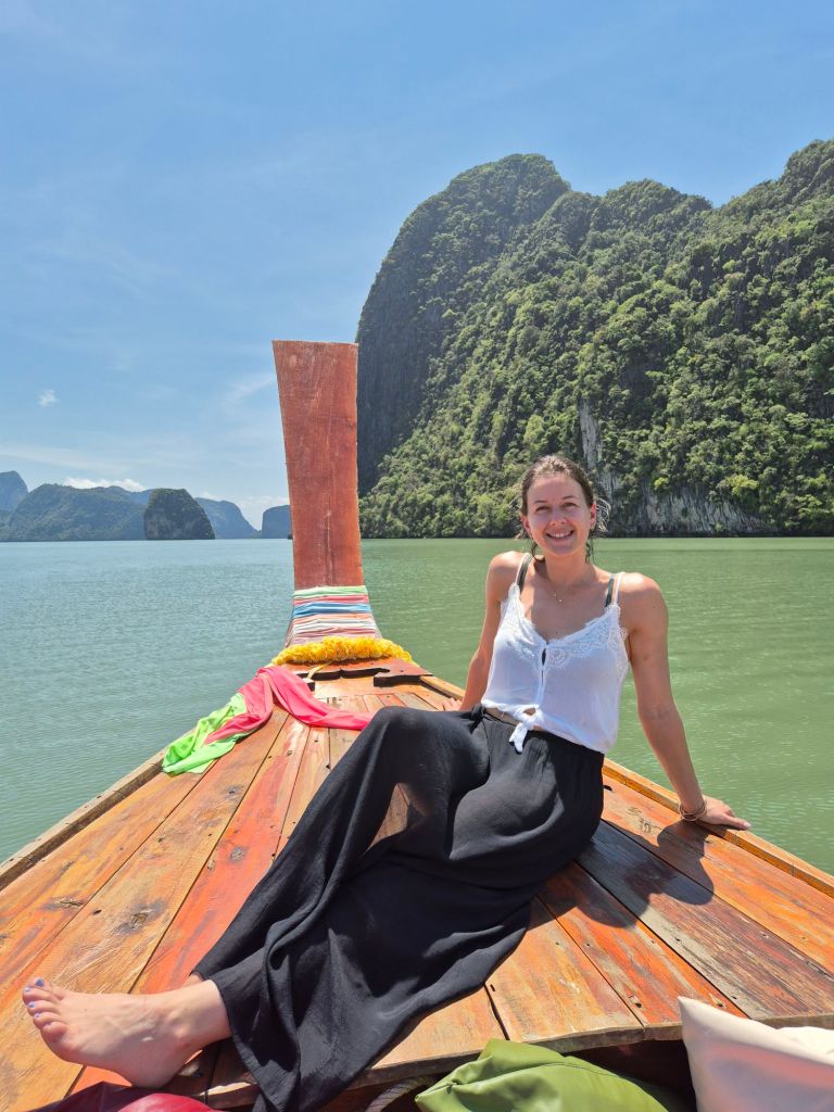 Today we were collected from our hotel and driven about an hour south of Koh Samui for another boat trip. This was an organised tour, so we were packed onto the boat with a whole bunch of people and set off to find dolphins. Since I tend to get seasick easily, I chose to sit up the front of the boat in the open, fresh air. Unfortunately, this happened to be the only place people were allowed to smoke, so it was a mix between enjoying the beautiful fresh air and ‘how long can Anna hold her breath’.