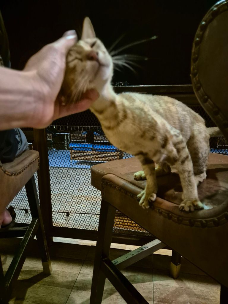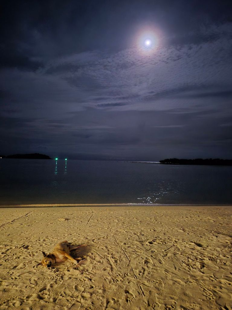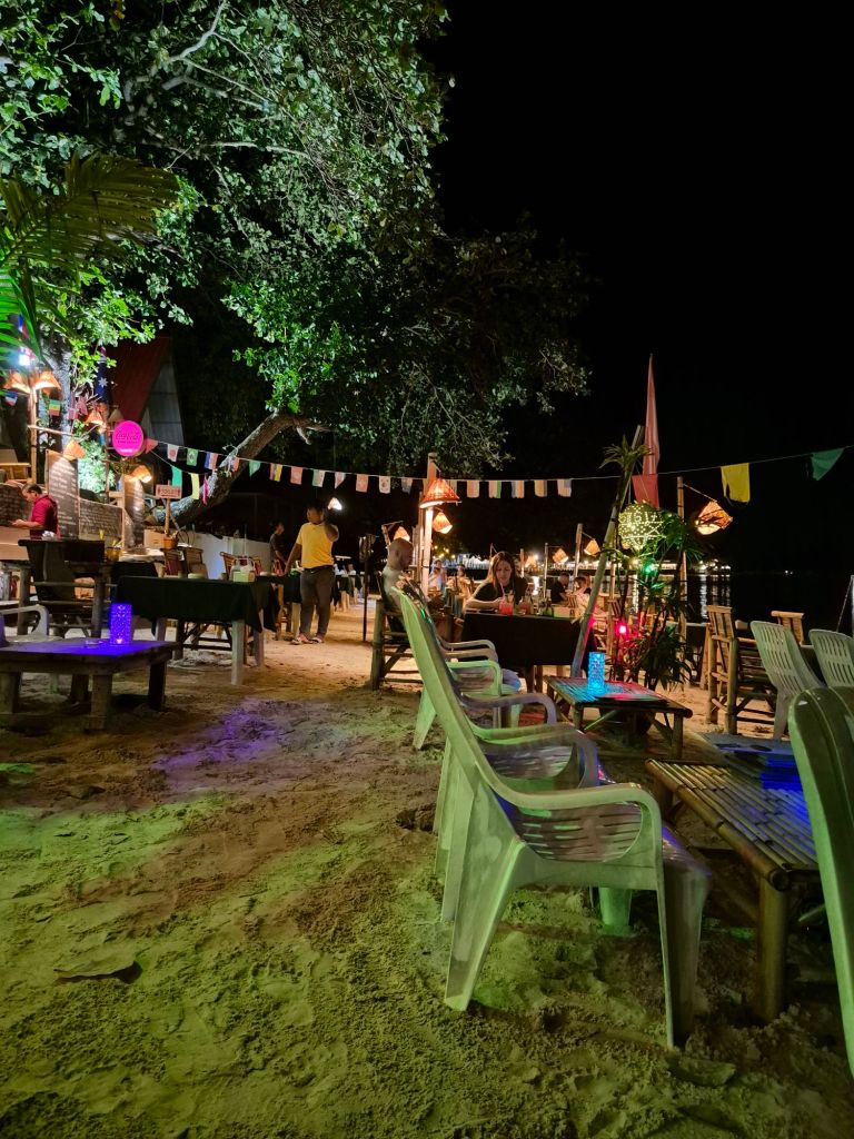 We sought out Italian dinner tonight because I was craving pasta. No alcohol was sold due to it being Buddha’s Day. Then we wandered along the beach to meet up with Jonny and Grace and watch a fire show, where you could buy booze. I don’t understand the rules. It’s full moon time, and there are fire shows a couple of times a night. The guys we watched were amazingly talented and looked like they loved what they were doing.