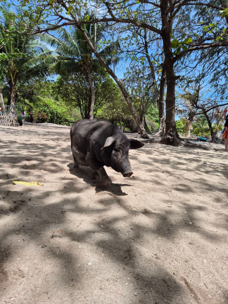 After this, we parked up on Mad Sum island, also known as Pig Island, where friendly pigs roam free.